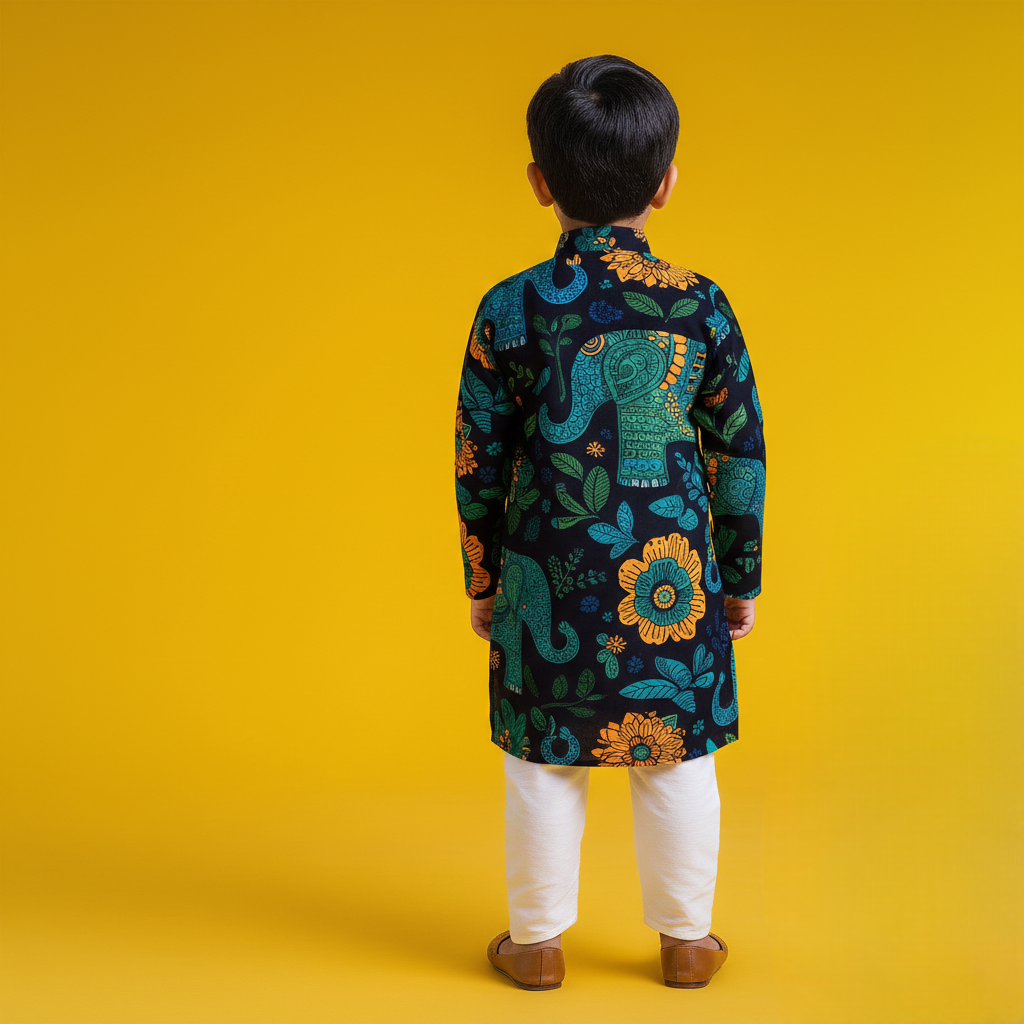 Available in a wide range of sizes, this Kurta Pajama set ensures a flattering and comfortable fit for every child. Made ethically in India, it supports local artisans and sustainable practices—giving you peace of mind while dressing your child in cultural style.